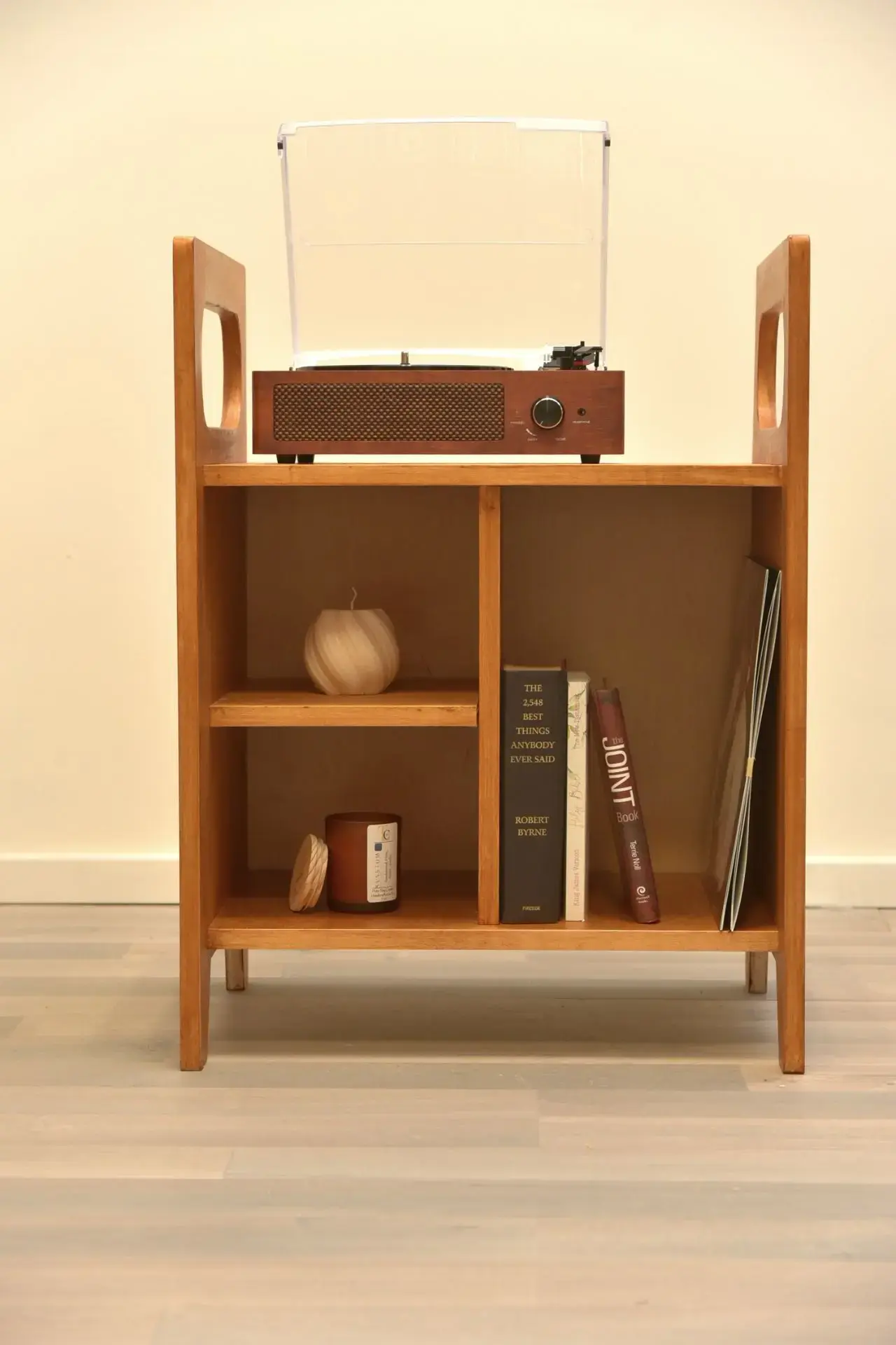 It’s the perfect piece for your turntable, vinyl collection, and books.